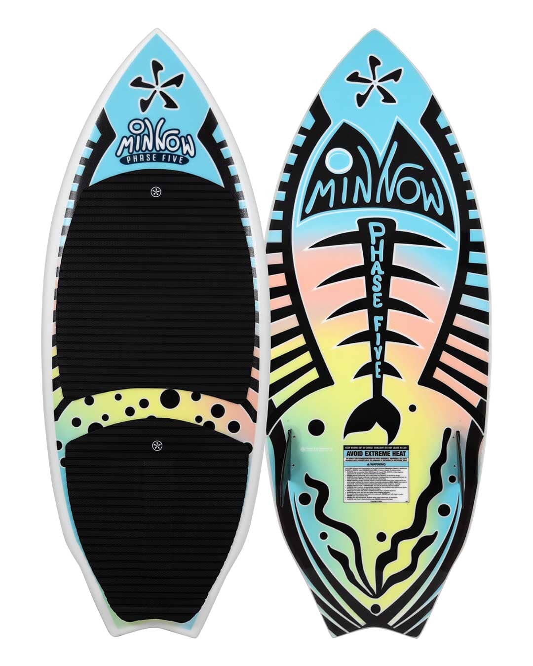 The Phase Five Minnow Wakesurfer answers the call for a true kids surf-style board designed to help young riders progress with confidence. Its aggressive swallow tail transitions into a stepped wing and a refined, pulled-in nose, making it easy for kids to maneuver while maintaining excellent speed and control on the wave.